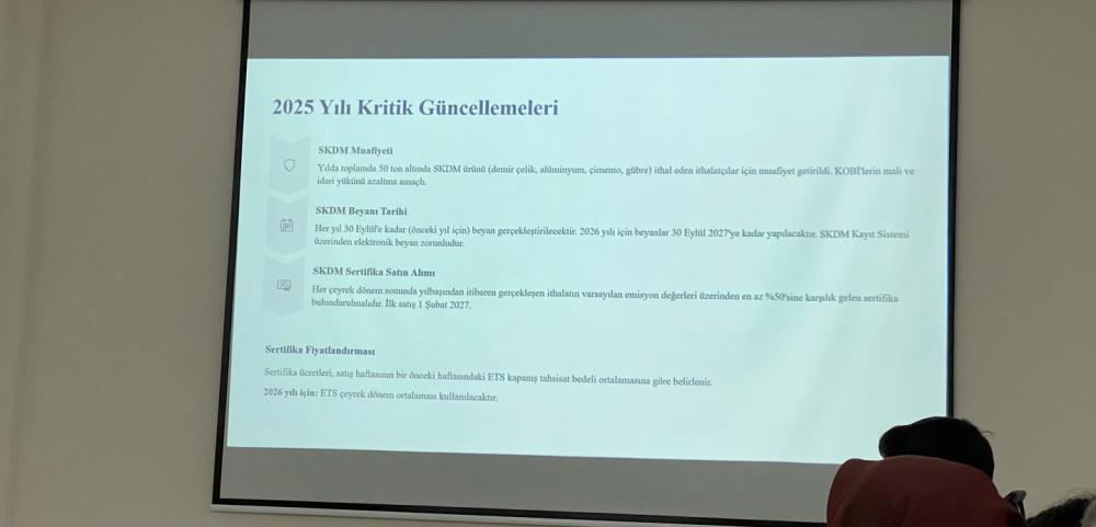 detaylı biçimde ele alındı. Katılımcılar, SKDM’nin özellikle AB ile ticaret yapan firmalar açısından doğuracağı etkiler hakkında kapsamlı bilgi edinme fırsatı buldu.